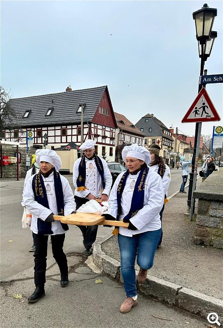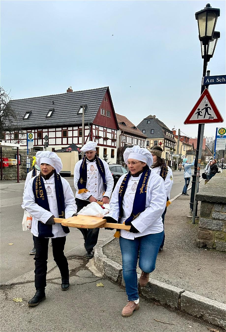 15:20 Uhr Der traditionelle Anschnitt des Riesenstollens auf der Bühne zieht jedes Jahr viele Schaulustige und Interessierte an. Alle freuen sich auf dieses Highlight mit anschließender Verkostung.